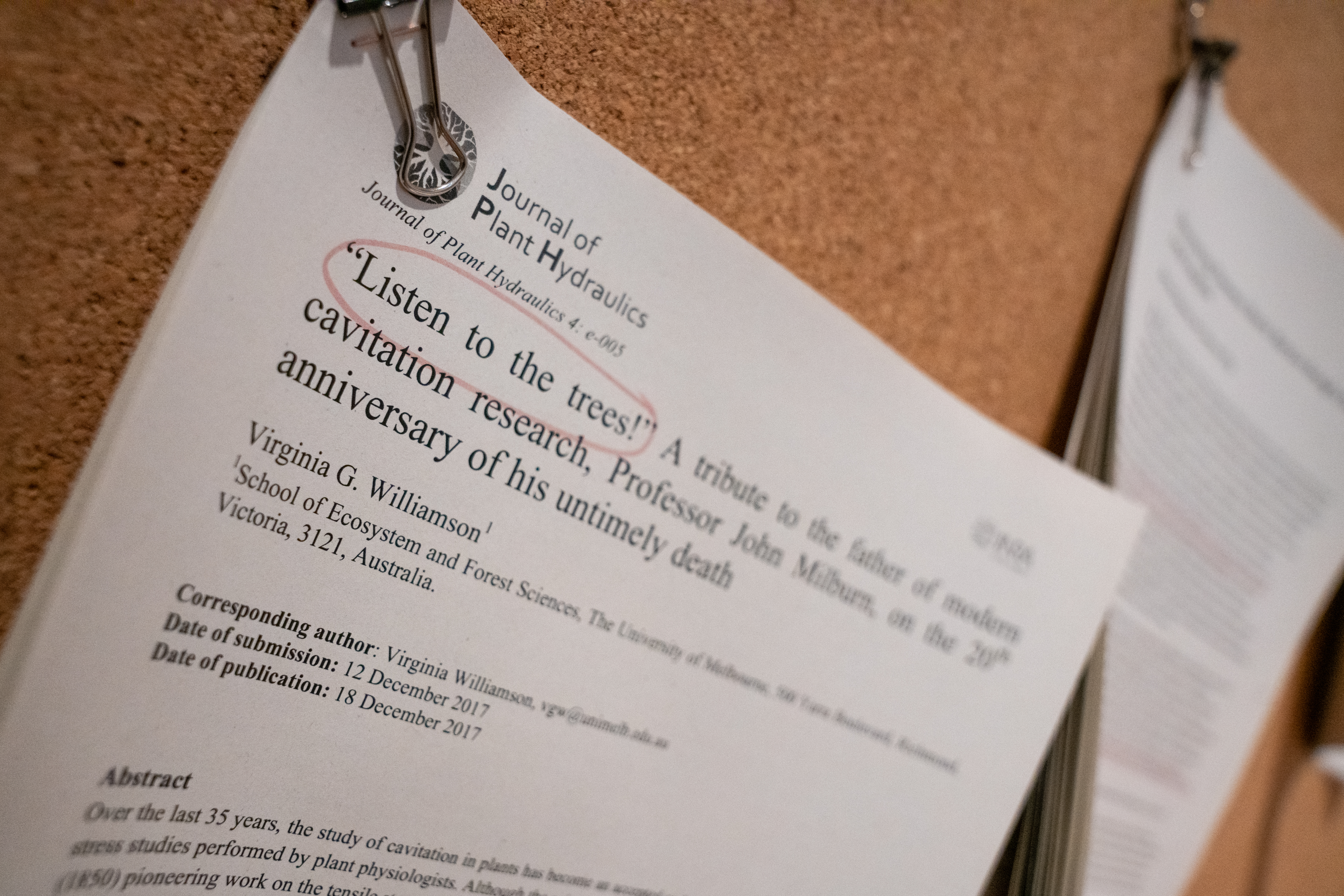 Agradecimientos: Stefan Mayr (Instituto Botánico, Universidad de Innsbruck), Barbara Beikircher (Instituto Botánico, Universidad de Innsbruck), Sabine Rosner (Universidad de Recursos Naturales y Ciencias de la Vida [BOKU], Viena) y Peter Hietz (Universidad de Recursos Naturales y Ciencias de la Vida [BOKU], Viena) por la cesión de los sonidos de embolismo; Ivette Serral y Romà Ogaya (CREAF), Jardí Botànic – Museu de Ciències Naturals de Barcelona; Elisabeth Robert.