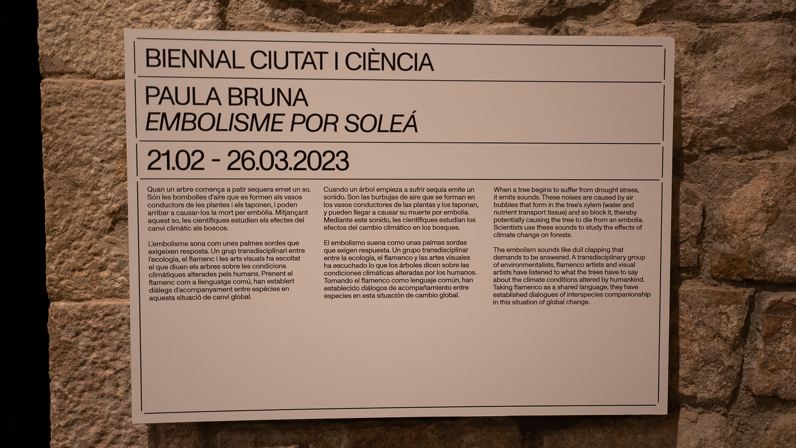 Imágenes de la exposición en La Capella, en el marco de la Bienal Ciudad y Ciencia de Barcelona, 2023. Fotografías de Pau Araus Serret, Laura Arensburg, Paula Bruna.